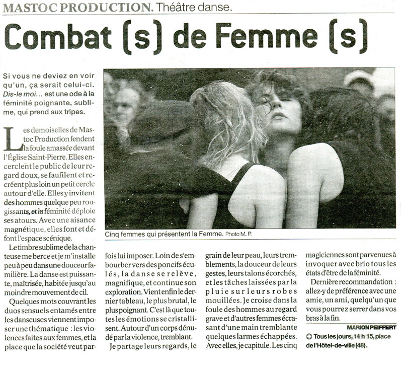 Dis-le moi… est un spectacle féminin mais qui se joue à hauteur d’homme, dans le public.
