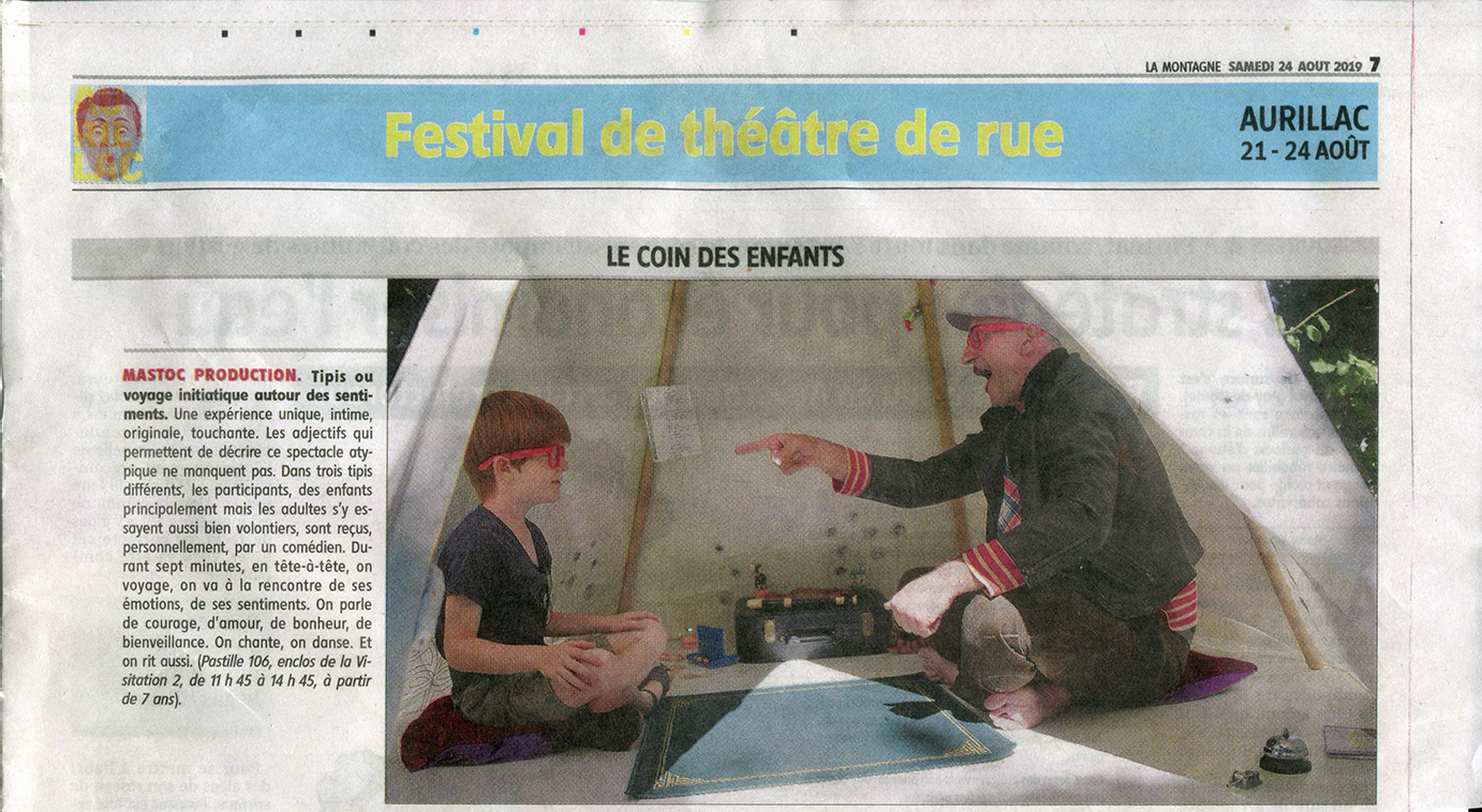 Ce spectacle atypique est composé de 3 tipis habités par 3 comédiens et où 3 jeunes spectateurs peuvent venir prendre place toutes les 10 mn. 3 univers intimes et feutrés autour des Courageux et des Amoureux, des Sincères et des Généreux, des Curieux et des Malicieux.